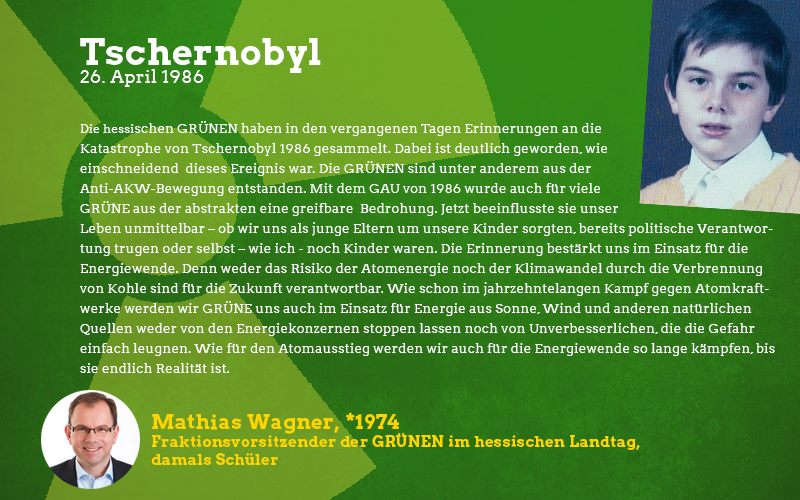 Der 30. Jahrestag der Atomkatastrophe am 26. April von Tschernobyl ist für die GRÜNEN in Hessen eine Mahnung zum weiteren Kampf gegen die Atomkraft und gegen die Erderwärmung. „Das Reaktorunglück vom 26. April 1986 in der Ukraine ist eine der schlimmsten Umweltkatastrophen aller Zeiten“, erklärt Angela Dorn, energiepolitische Sprecherin der Fraktion von BÜNDNIS 90/DIE GRÜNEN im Hessischen Landtag. „Für uns GRÜNE gehört der Kampf gegen die lebensgefährliche Nutzung der Atomkraft zum Erbgut, wir sind unter anderem aus der Anti-AKW-Bewegung entstanden. Mit dem GAU von 1986 wurde weit über die Umweltbewegung hinaus die bis dahin abstrakte Bedrohung greifbar.“