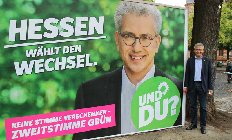 Die hessischen GRÜNEN haben heute mit der Enthüllung des letzten Großflächenmotivs die Schlussphase des Wahlkampfs eingeläutet. Auf allen über 600 Großflächen der GRÜNEN in Hessen ist Spitzenkandidat Tarek Al-Wazir zu sehen, daneben prangt der Text „Hessen wählt den Wechsel“.